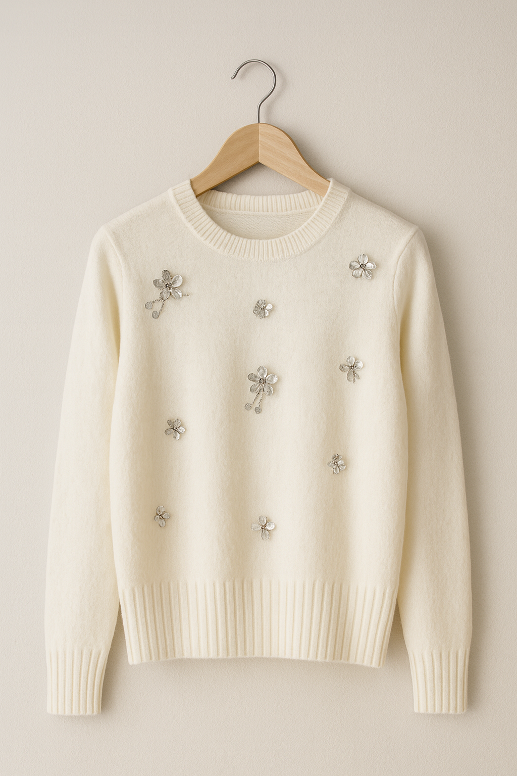 Pulover călduros și moale, decorat cu flori pentru un aspect feminin și delicat. Croiala lejeră și materialul plăcut îl fac ideal pentru ținutele de zi, office sau casual-chic. Se așază perfect pe siluetă și se potrivește ușor mai multor mărimi.