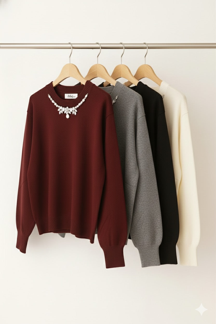 Pulover Soft cu Colier de Pietre – Model Elegant